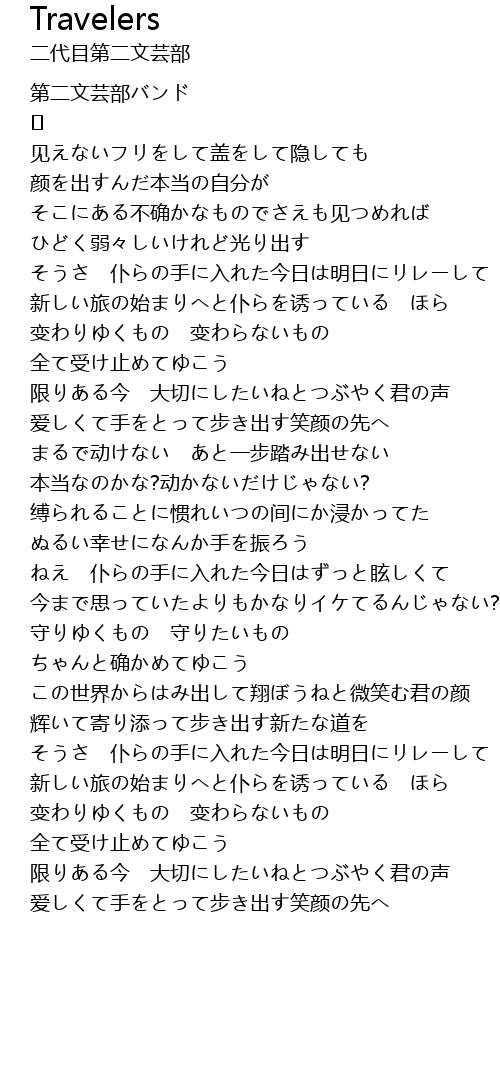 | 歌曲 | Travelers |