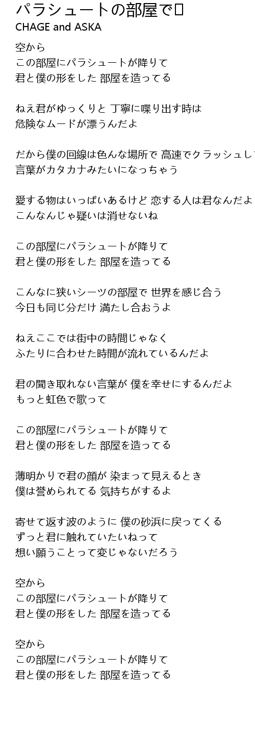 | 歌曲 | パラシュートの部屋で |