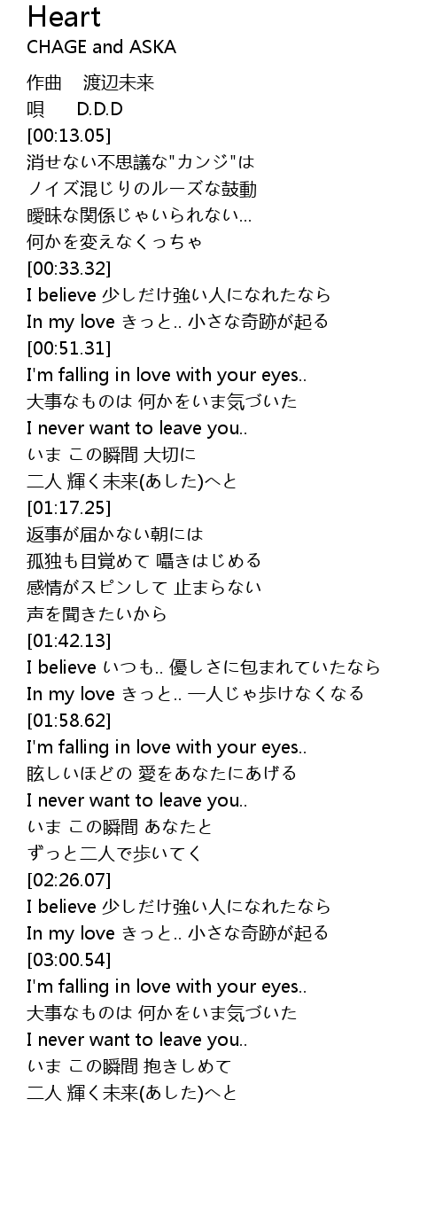 | [00:43.73] | In my love きっと.. 小さな奇跡が起る |