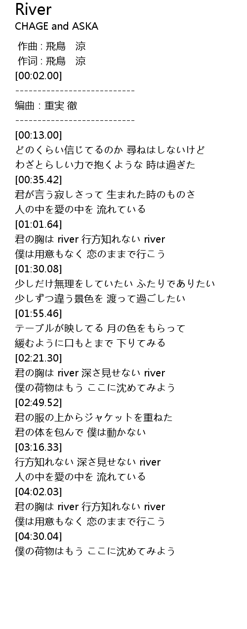 | [03:36.73] | 行方知れない 深さ見せない river |
