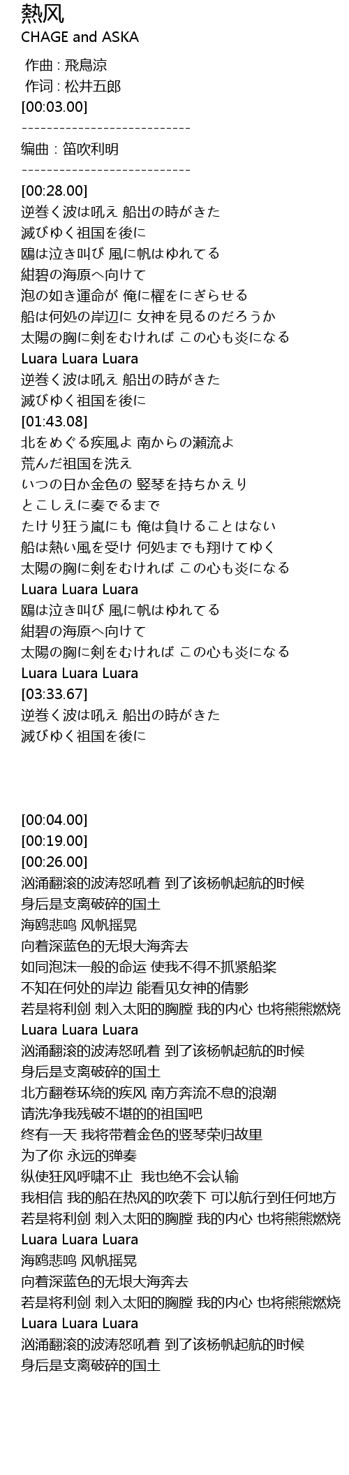 | [02:00.37] | 北をめぐる疾風よ 南からの瀬流よ |
