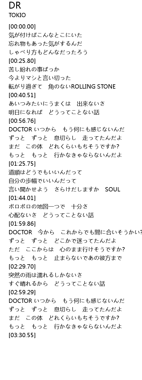 | [03:02.45] | DOCTOR いつから もう何にも感じないんだ |