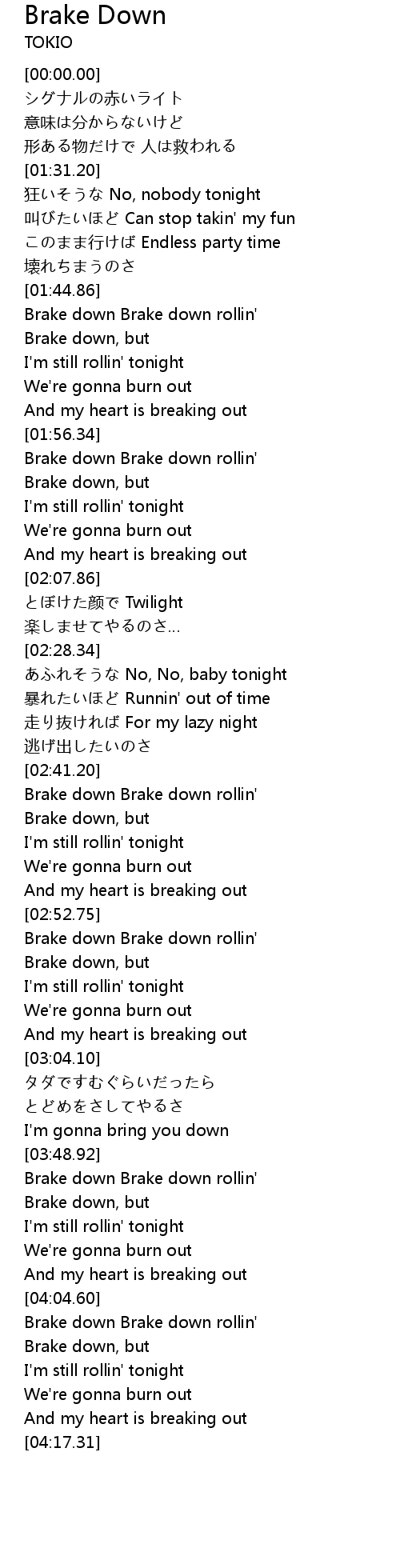 | [04:04.92] | Brake down Brake down rollin' |