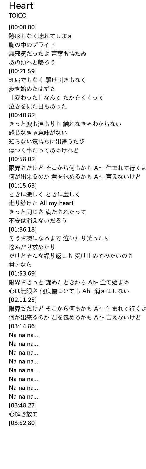 | [02:02.85] | 心は無限さ 何度傷ついても Ah- 消えはしない |