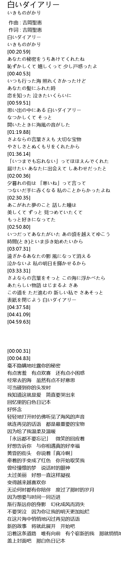 | [00:00.31] | 白いダイアリー |