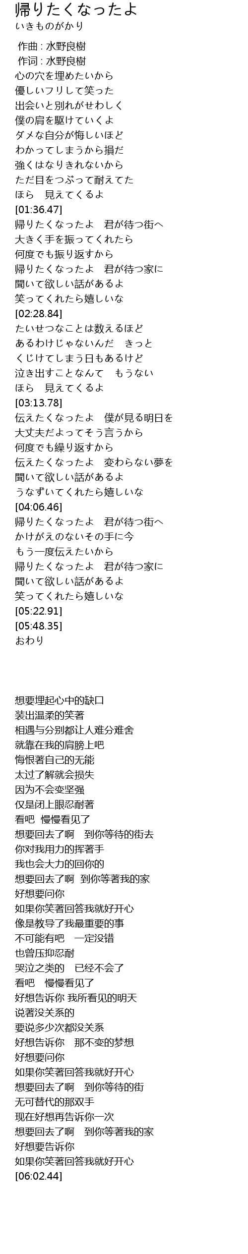 | [02:02.14] | 想要回去了啊 到你等著我的家 |