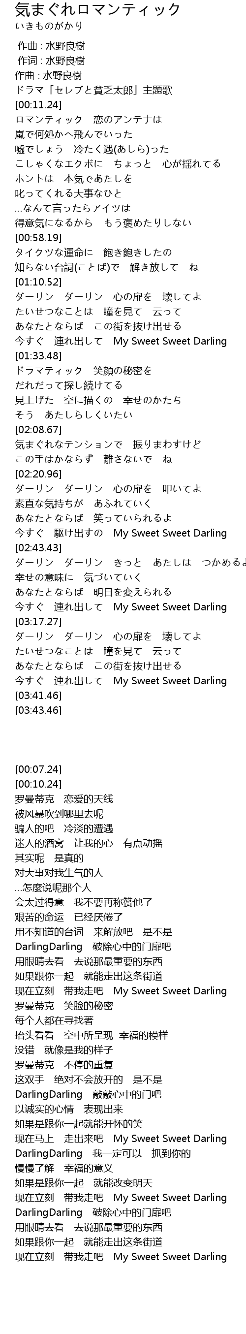 | [03:34.79] | 今すぐ 連れ出して My Sweet Sweet Darling |