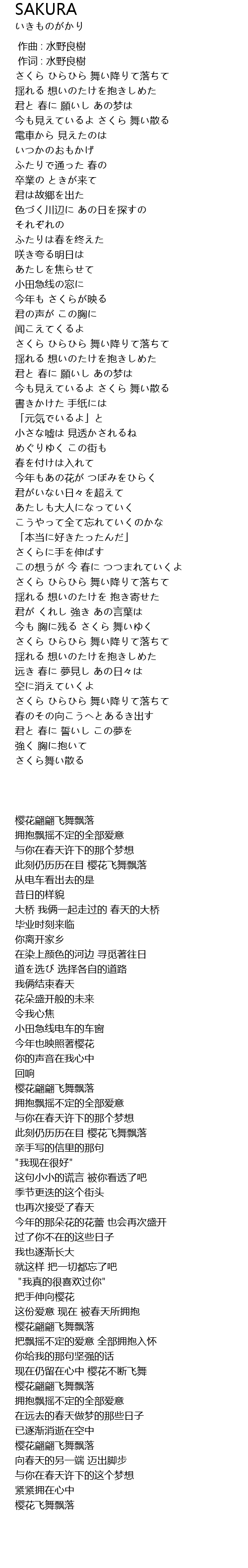 | 歌曲 | SAKURA |
