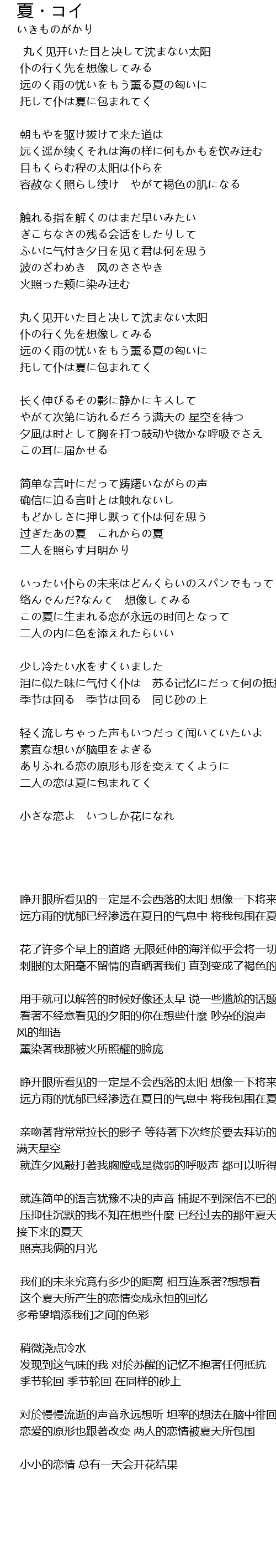 | 压抑住沉默的我不知在想些什麼 已经过去的那年夏天 接下来的夏天 | |