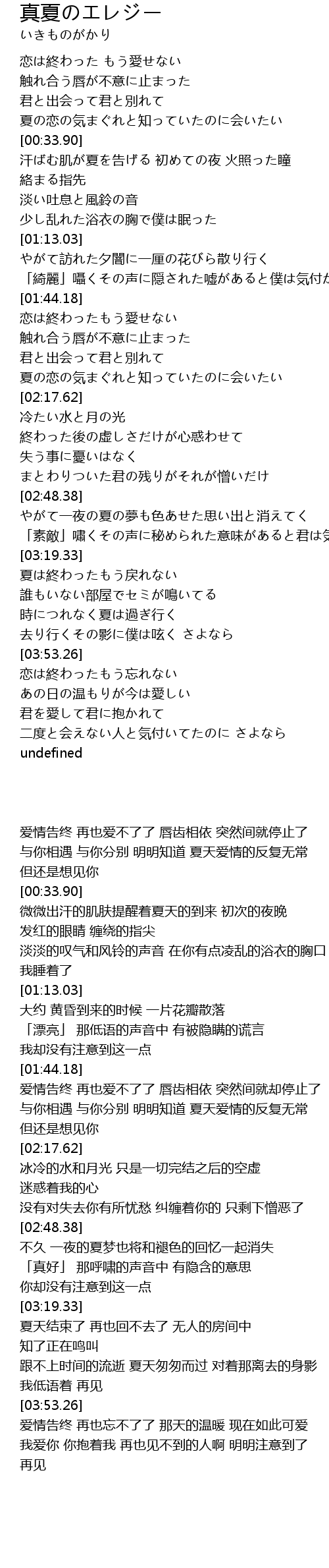 | [00:15.29] | 君と出会って君と別れて 夏の恋の気まぐれと知っていたのに会いたい |