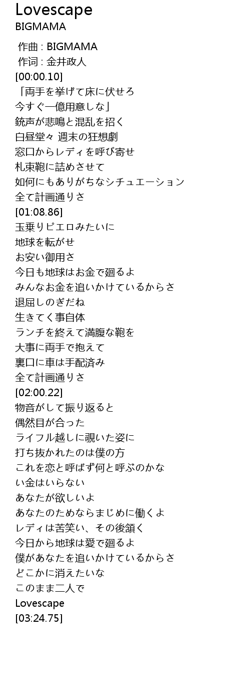 | [00:00.00] | zuò qǔ : BIGMAMA |
