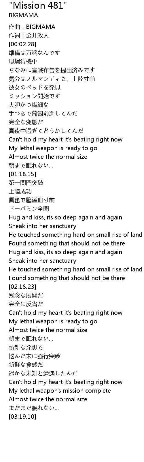 | [00:00.00] | zuò qǔ: BIGMAMA |