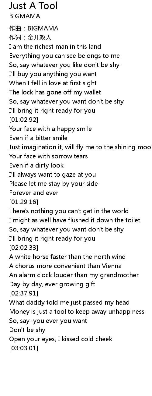 | [02:44.81] | Money is just a tool to keep away unhappiness |