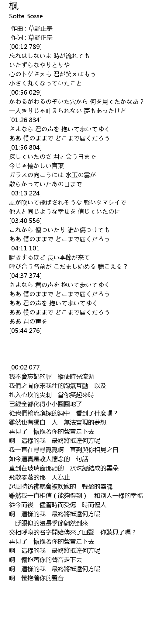 | [00:01.00] | zuo ci : cao ye zheng zong |