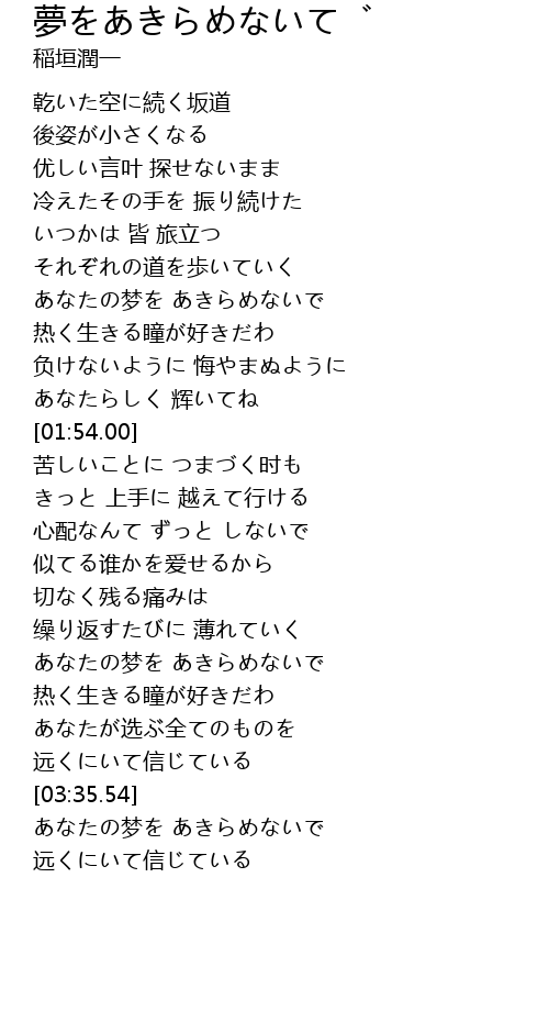 | [03:41.64] | あなたの梦を あきらめないで |