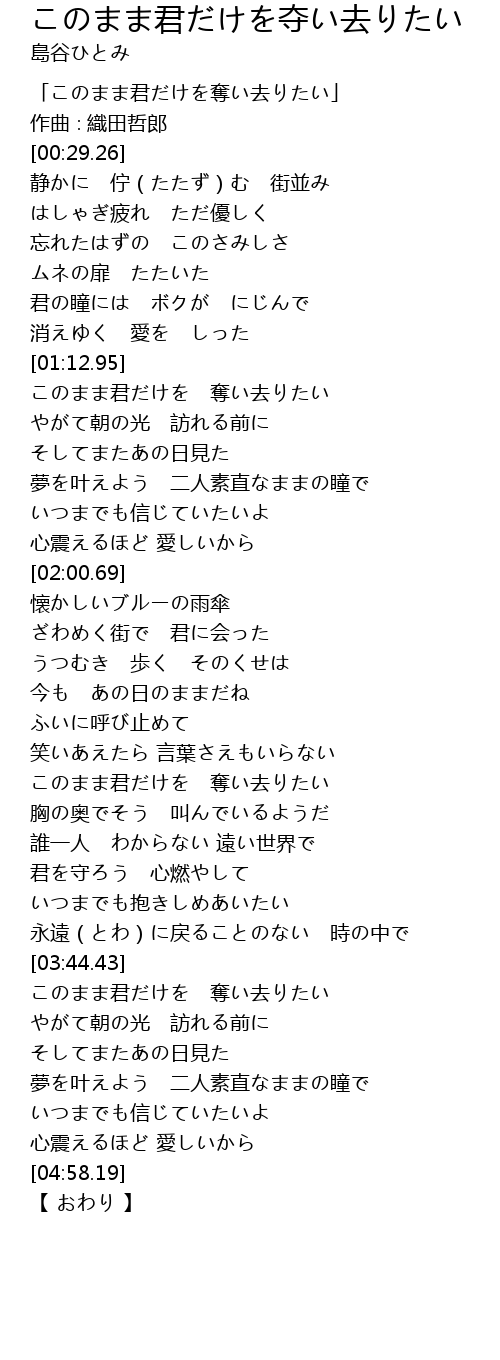 | [04:11.70] | このまま君だけを 奪い去りたい |