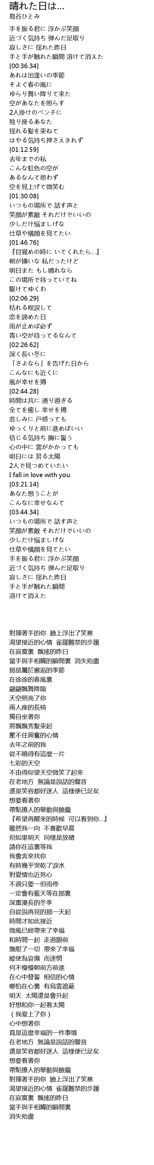 | [01:55.11] | 明日また もし晴れなら |