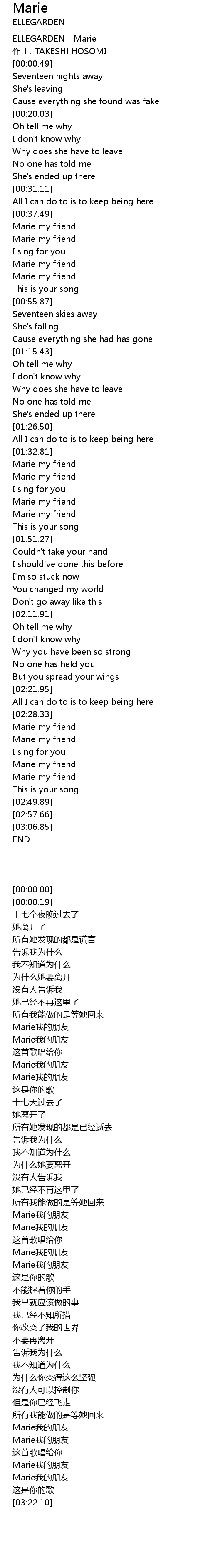 | [00:00.00] | ELLEGARDEN Marie |