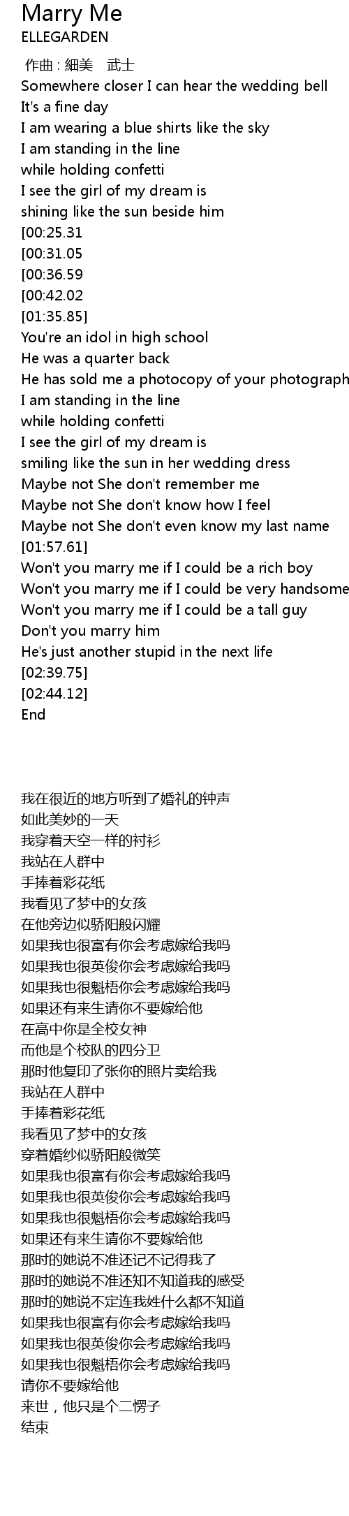| [02:25.33] | Won't you marry me if I could be a tall guy |