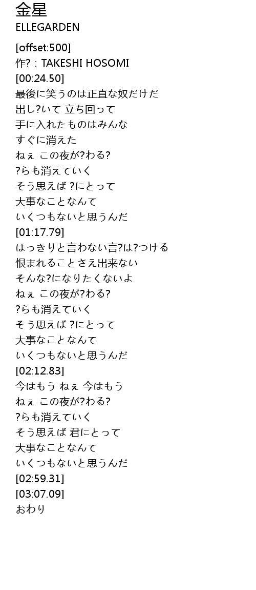 | [00:52.39] | ねぇ この夜が?わる? |