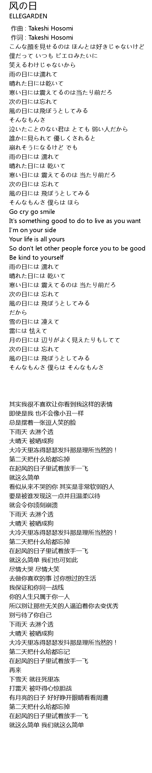| [00:01.00] | 作词 : Takeshi Hosomi |
