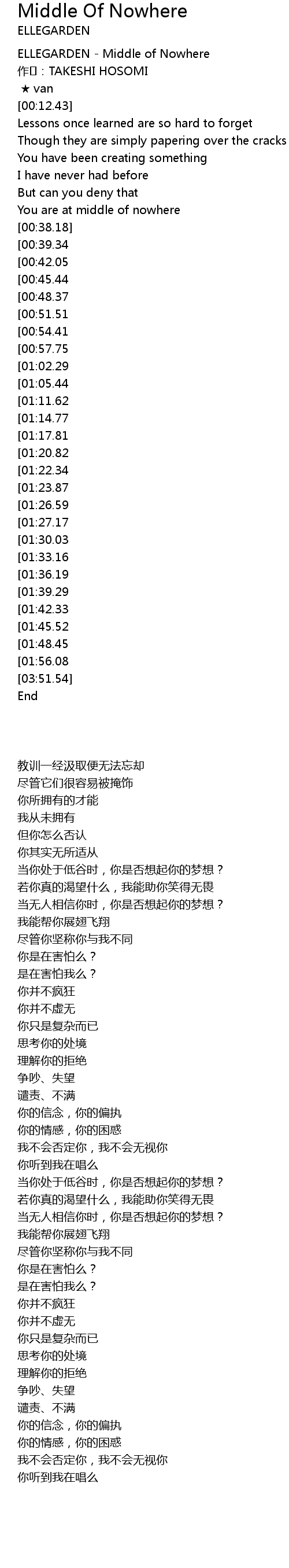 | [00:00.00] | ELLEGARDEN - Middle of Nowhere |