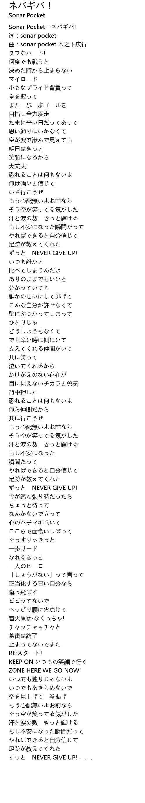 | [00:00.600] | Sonar Pocket - ネバギバ! |