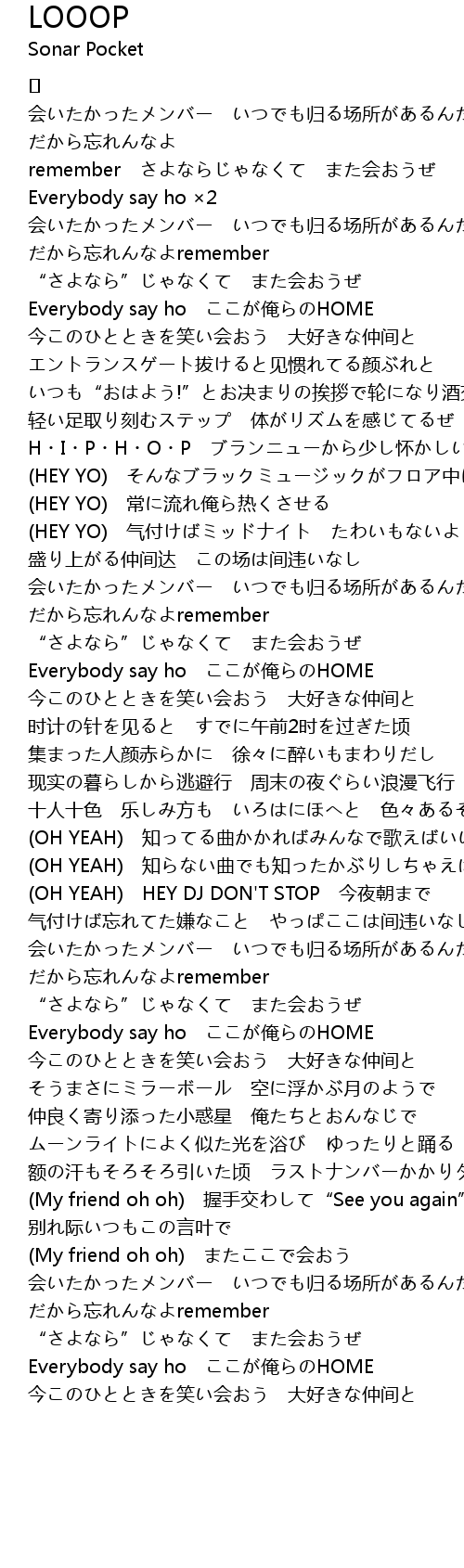 | だから忘れんなよremember “さよなら”じゃなくて また会おうぜ | |