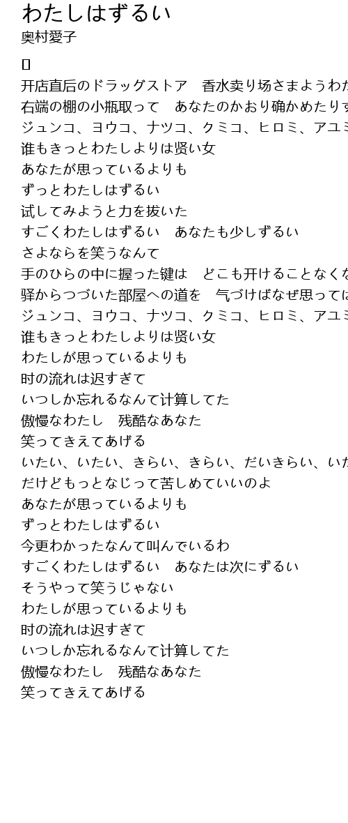 わたしはずるい 歌词