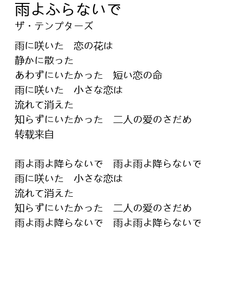 雨よ雨よ降らないで 雨よ雨よ降らないで |