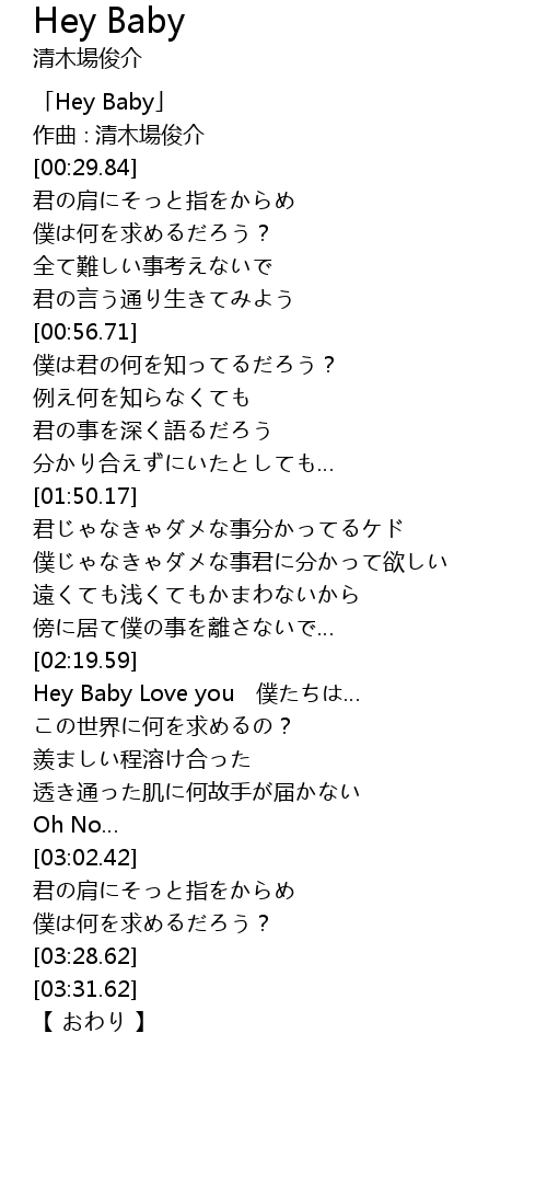 | [02:22.94] | Hey Baby Love you 僕たちは… |