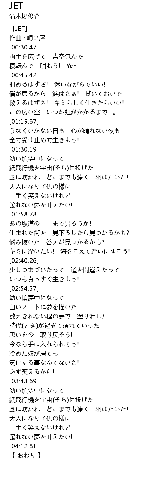 | [03:53.03] | 風に吹かれ どこまでも遠く 羽ばたいた! |