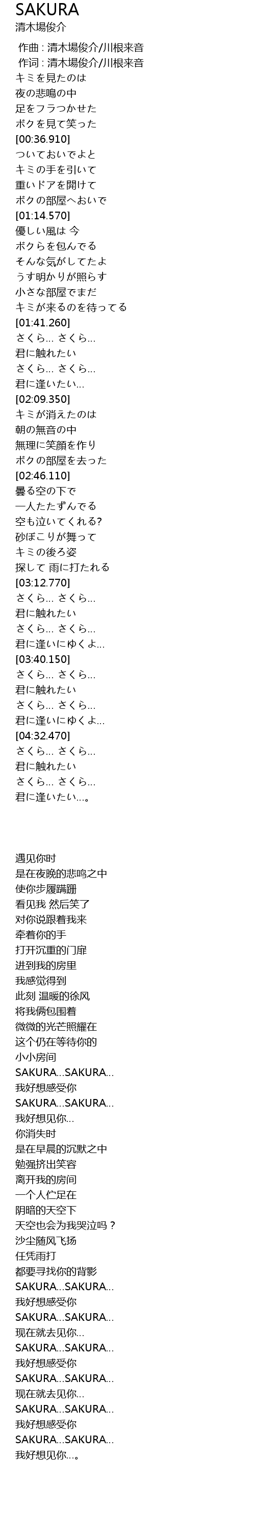 | [04:33.030] | SAKURA…SAKURA… |