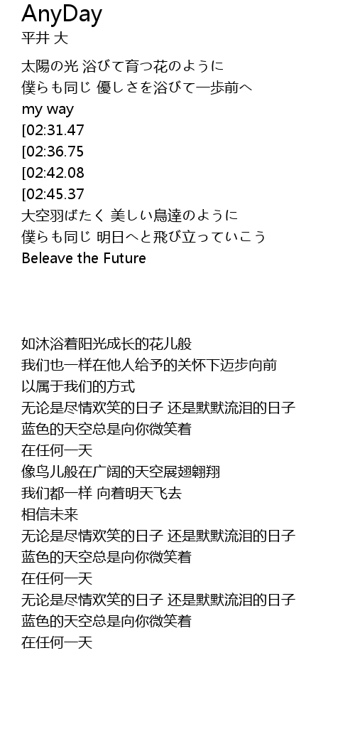 | [03:04.23][02:42.08][01:58.08] | Any day |