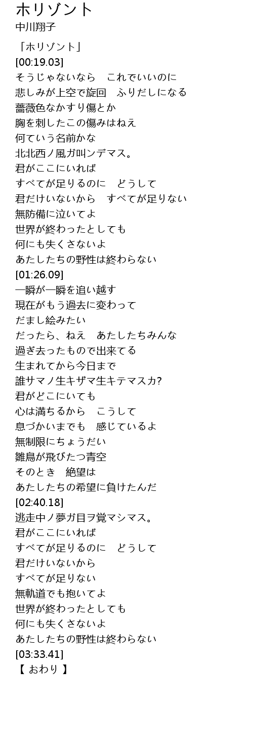 | [02:24.60] | 雛鳥が飛びたつ青空 |