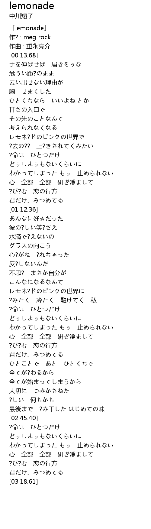 | [00:39.39] | レモネ?ドのピンクの世界で |