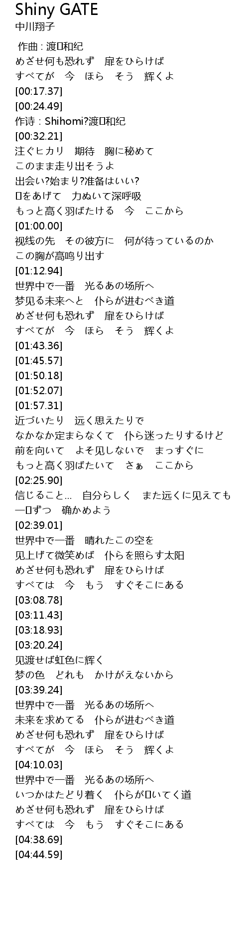 | [04:24.41] | めざせ何も恐れず 扉をひらけば |