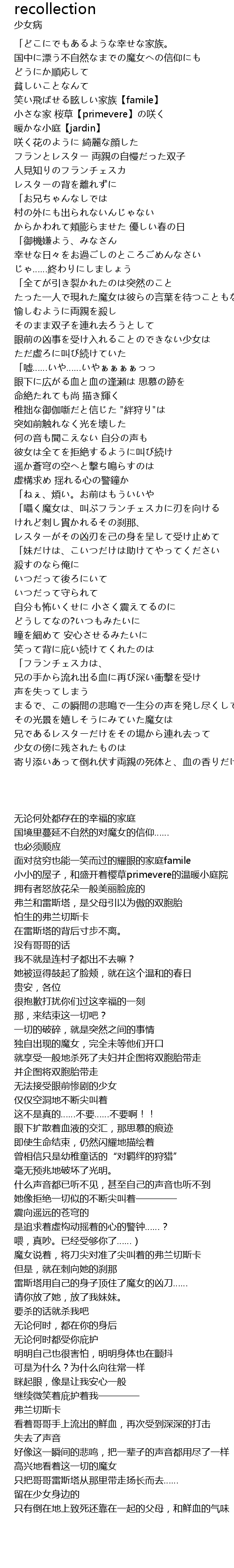 | [02:39.290] | 曾相信只是幼稚童话的“对羁绊的狩猎” |