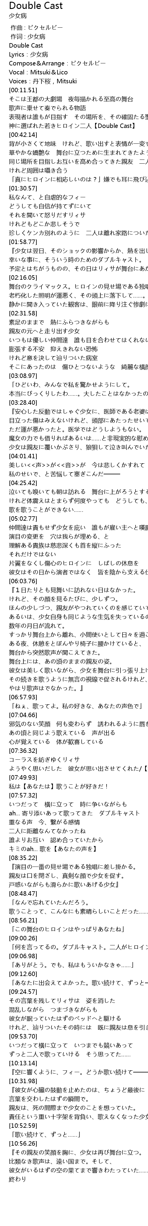 | [00:35.40] | 神に選ばれた若きヒロイン二人【Double Cast】 |