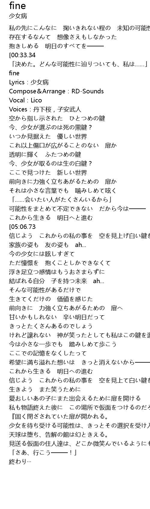| [06:11.47] | 少女を待ち受ける可能性は、きっとその選択を受け入れるだろう。 |
