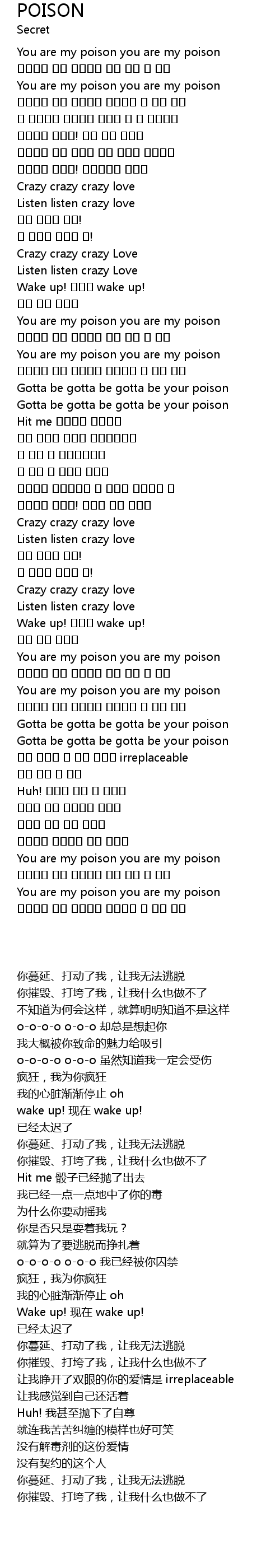 | [02:35.550] | Gotta be gotta be gotta be your poison |