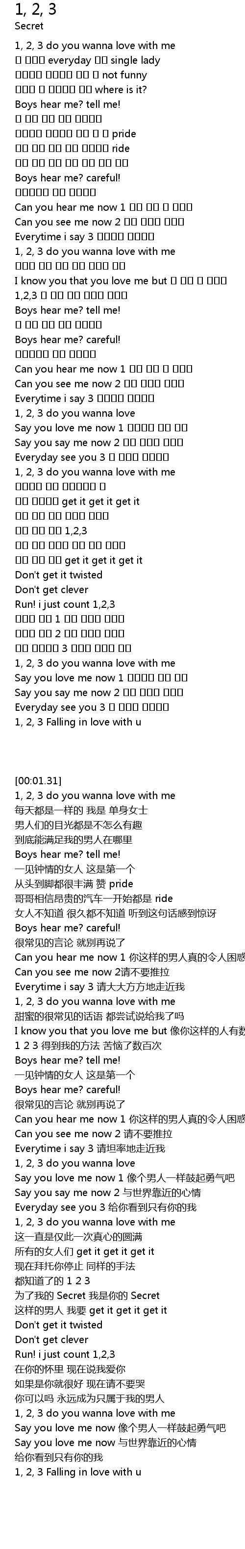 | [02:00.04] | 1, 2, 3 do you wanna love with me |