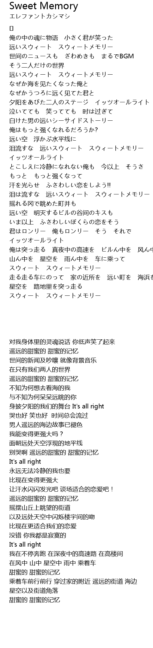 | 歌曲 | Sweet Memory |