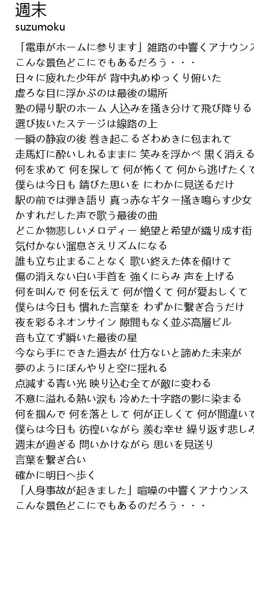 | 週末が過ぎる 問いかけながら 思いを見送り 言葉を繋ぎ合い | |