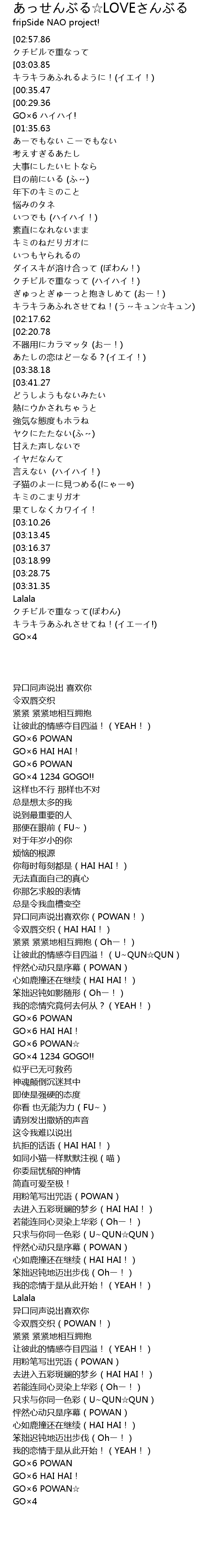 | [03:38.18] | GO×6 HAI HAI! |