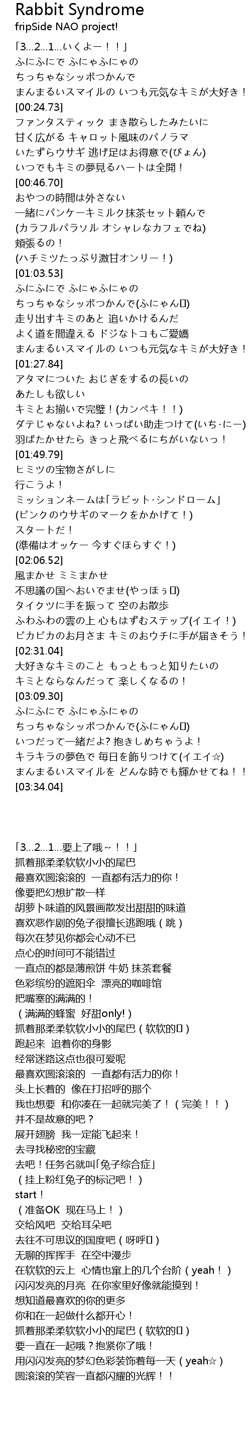 | [01:55.51] | 行こうよ! ミッションネームは「ラビット・シンドローム」 |