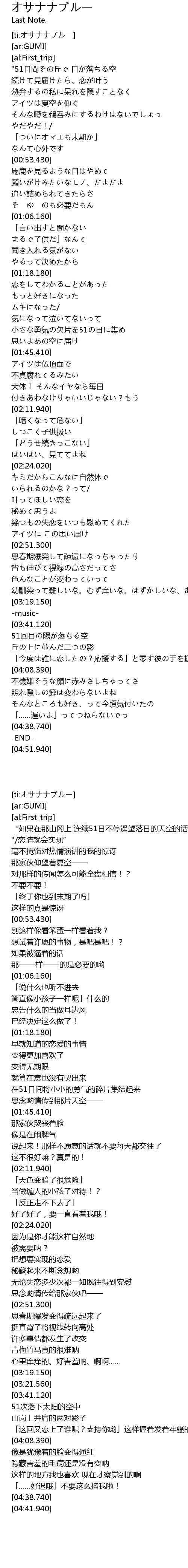 | [ti:オサナナブルー] | |
