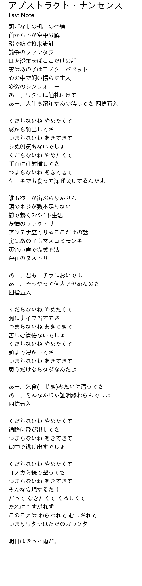 | 歌曲 | アブストラクト・ナンセンス |