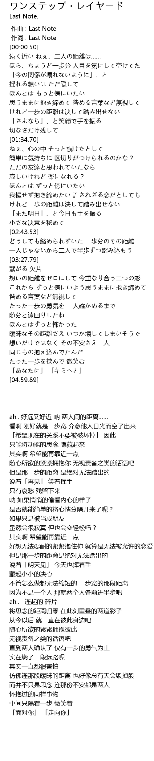 | [04:04.58] | 直到两人确认了 仅有一步的勇气为止 |