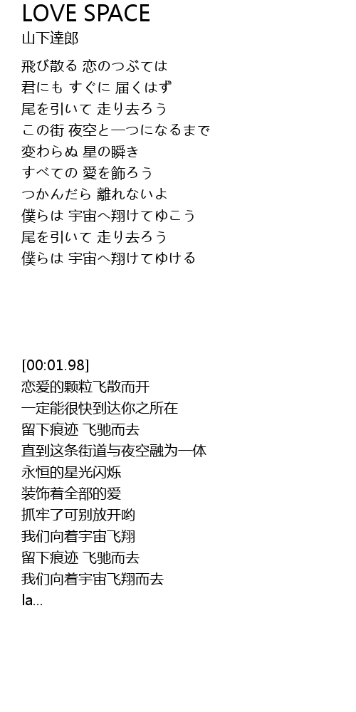 | [01:30.60] | 我们向着宇宙飞翔 |